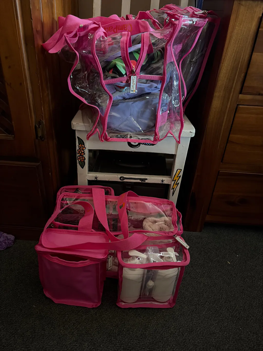 I have medium and shower bag in pink even though my fav colour is purple 🙂 and it’s the best thing I’ve owned as in camping/beach time… well done I absolutely love them